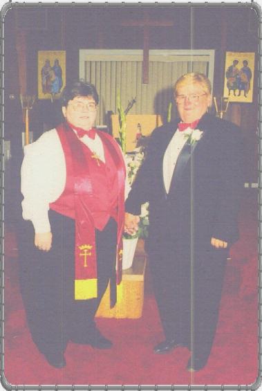 The picture to the right is that of Rev. Kaye A. Lee and her spouse of 16 years, It was so great to have Rev. Kaye Lee perform our Holy Union on our 25th Silver Anniversary which we cellebrated on July 19, 1997. The Ceremony was performed at Lighthouse Metropolitan Community Church in Oklahoma City, OK Thank you so very much Kaye and Pat you are what we speak of when we speak of Christianity and God's love, I wish there were more like you and so this tribute is to you for all that you have done for Larry and myself. Love you forever, Rick and Larry | Rev. Kaye Lee and Pat Moore | ||||||||||||||||